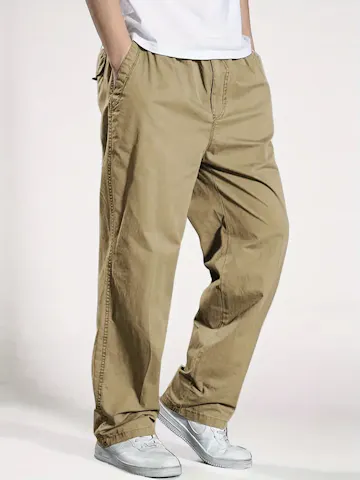 Versatile Casual Work Pants for Men - Elastic Waist, Straight Leg, Wrinkle-Resistant Trousers for Office and Semi-Formal Looks.
